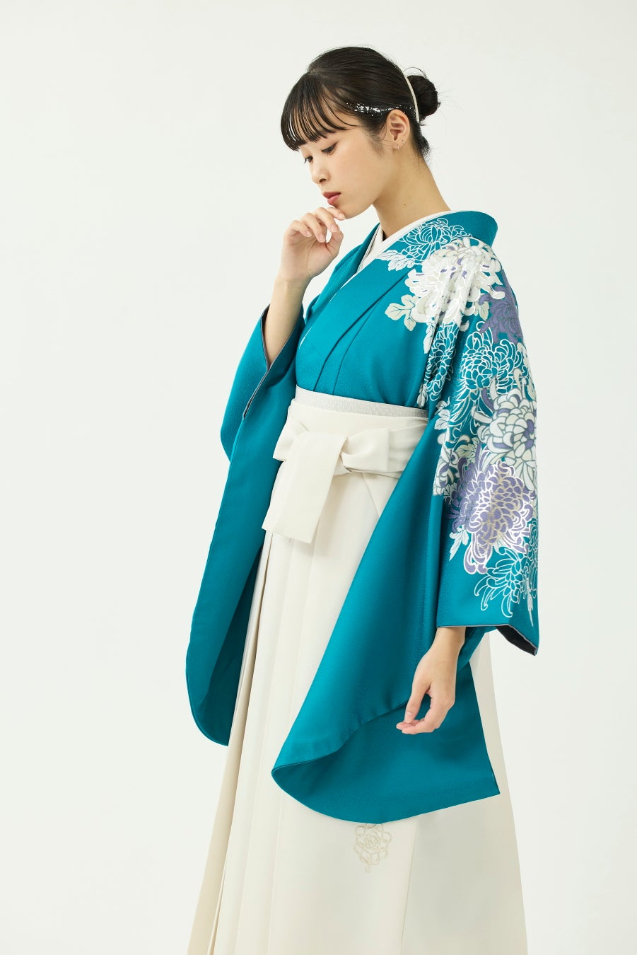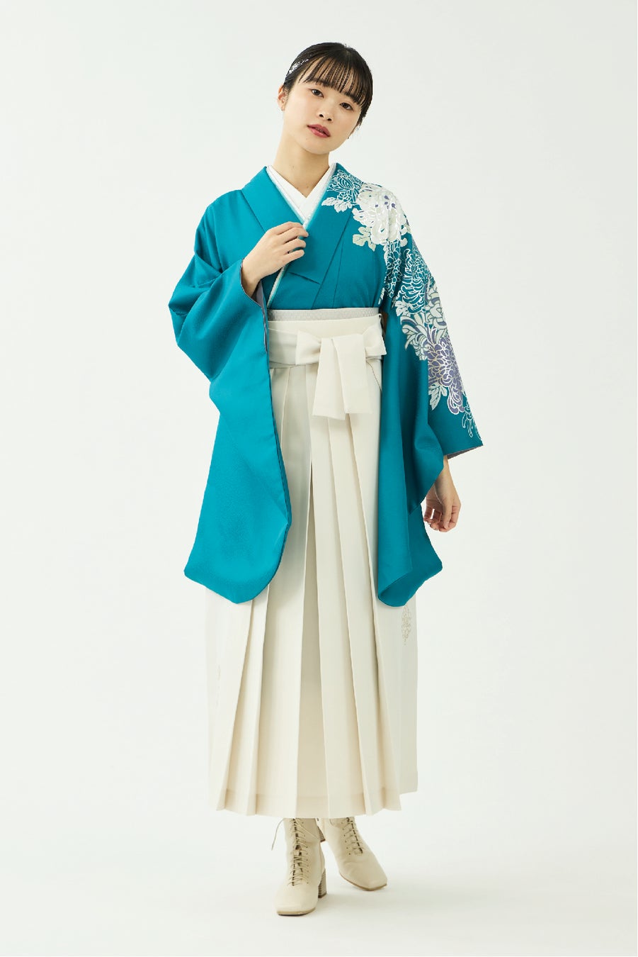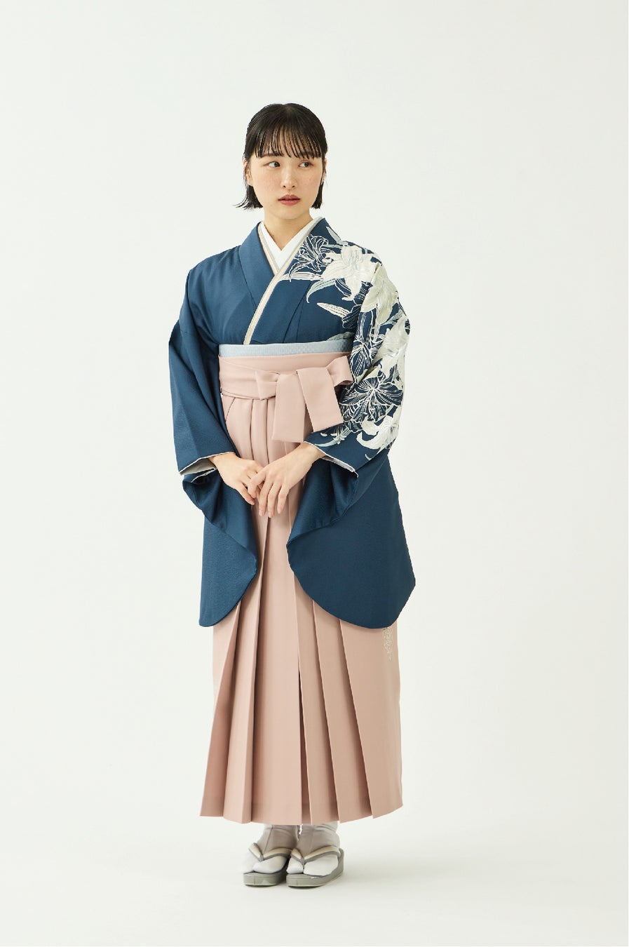 古来より、花の夢をみることは吉兆の象徴とされ、才能の開花や幸運、努力が実を結ぶことを意味すると言われています。その中でも大きな花は、願望成就のシンボルとして、心に希望を灯す存在とされています。本シリーズでは、纏う方の夢を後押しし、未来に向かうその一歩を応援したいという願いをデザインに込めました。夢に向かって新たな一歩を踏み出す卒業式の装いにふさわしい一着です。