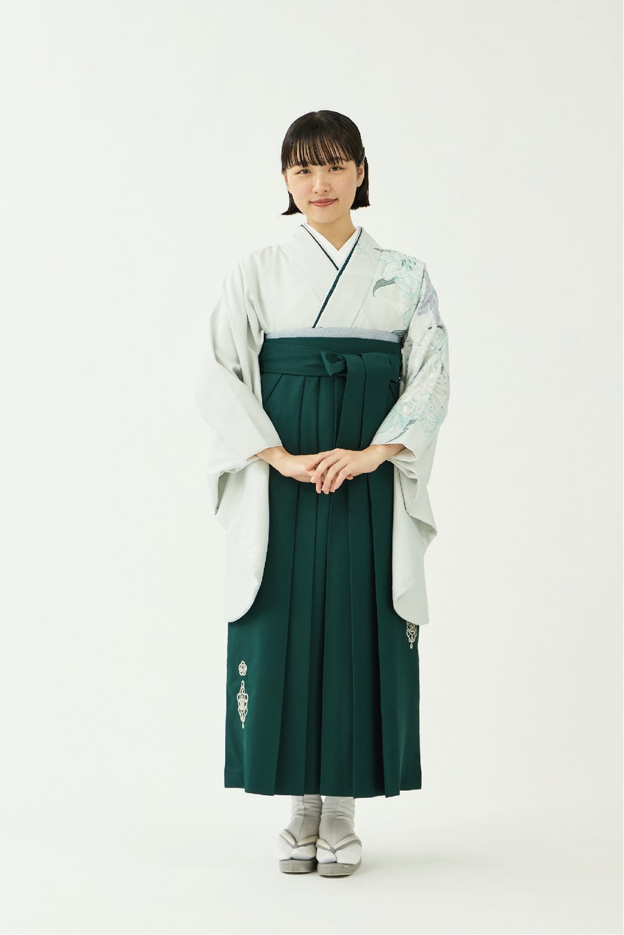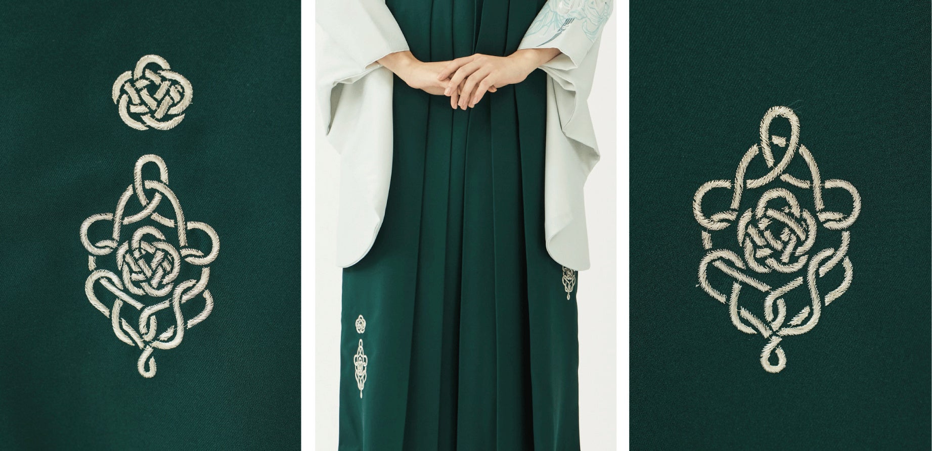 さらに、二尺袖に合わせた新作の袴「夢結び」も新たにリリースいたします。「梅結び」をモチーフにした刺繍を施したデザインとなっています。「梅結び」には、魔除け、運気向上といった縁起の良い意味が込められています。卒業式という特別な日に、心強いお守りとなるよう願いを込めて制作しました。「花の夢」と組み合わせることで、より華やかで特別感のある装いになります。