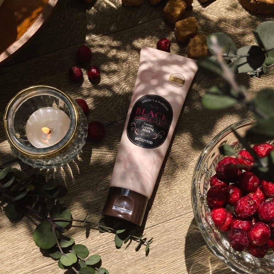 『SKINFOOD』より、2020年11月に日本限定で発売した黒ザクロ エナジー トッピングマスクを、