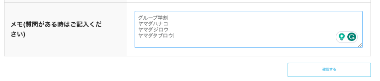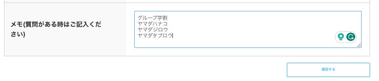 「グループ学割(代表者)グループの全員分の名前」を記入。