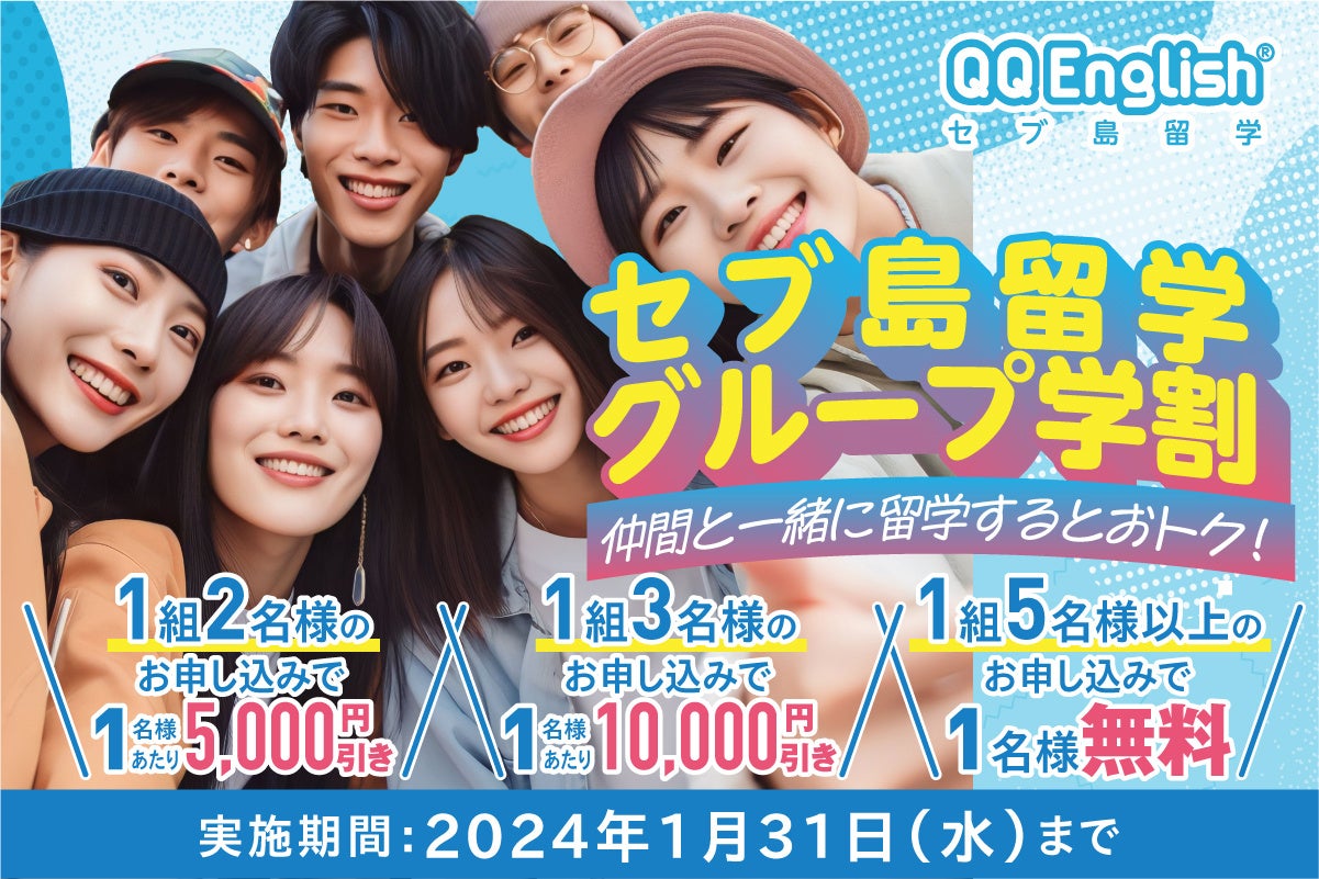 株式会社QQEnglish (本社:東京都渋谷区、代表取締役:藤岡 頼光)は、セブ島留学事業において「学生向けのグループ割キャンペーン」を開始します。