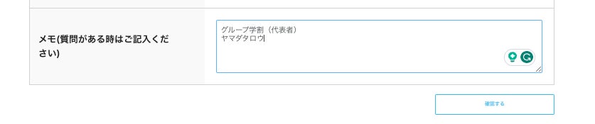 「グループ学割(グループメンバー)代表者名OOOO」を記入。