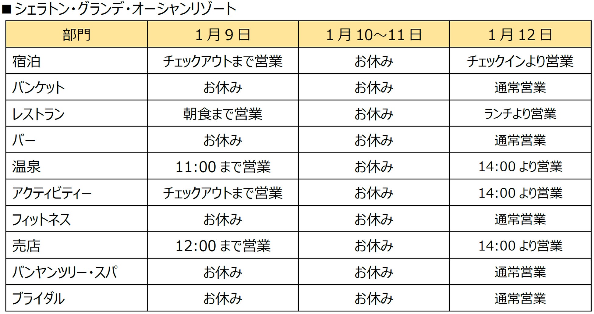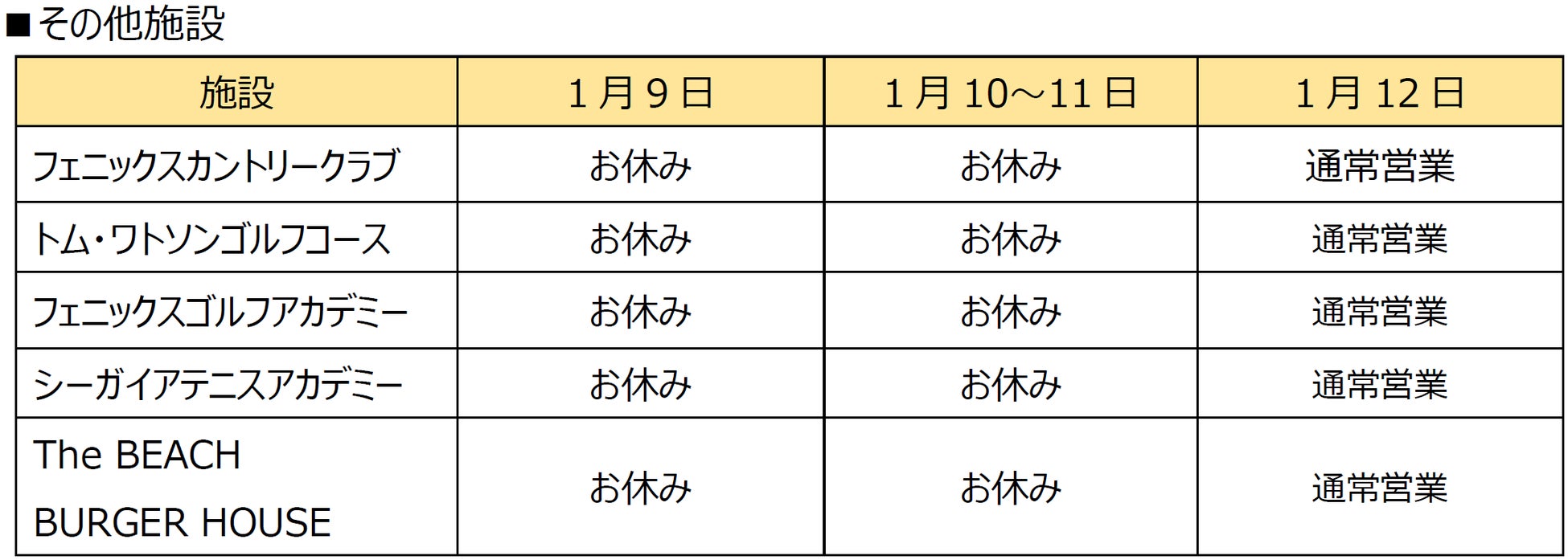 フェニックス・シーガイア・リゾート「全施設一斉休館日」のご案内