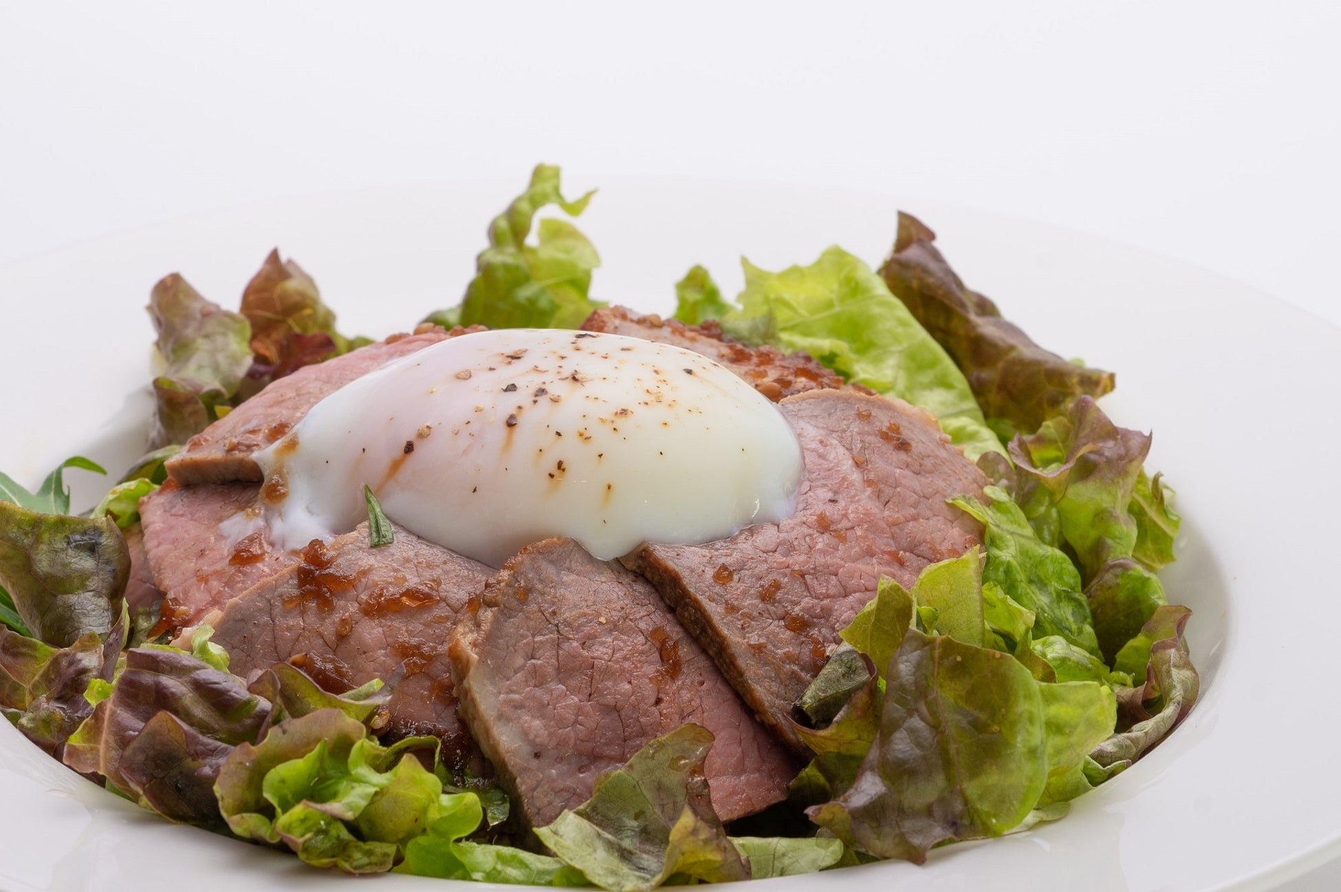 りんご和牛信州牛を贅沢に使用したローストビーフ丼。温泉卵をからめて召し上がれ。