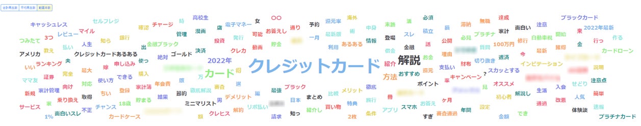 (上)ワードクラウド:「クレジットカード」と共に用いられている関連語句を表示