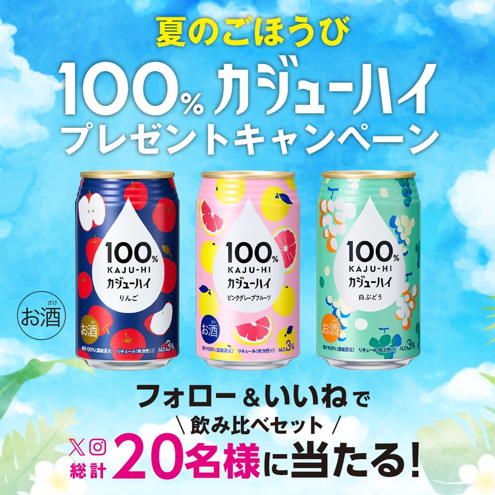 【SNSプレゼントキャンペーン】100%カジューハイ「飲み比べセット」が当たる! ジューシーな「夏のごほうび」をプレゼント