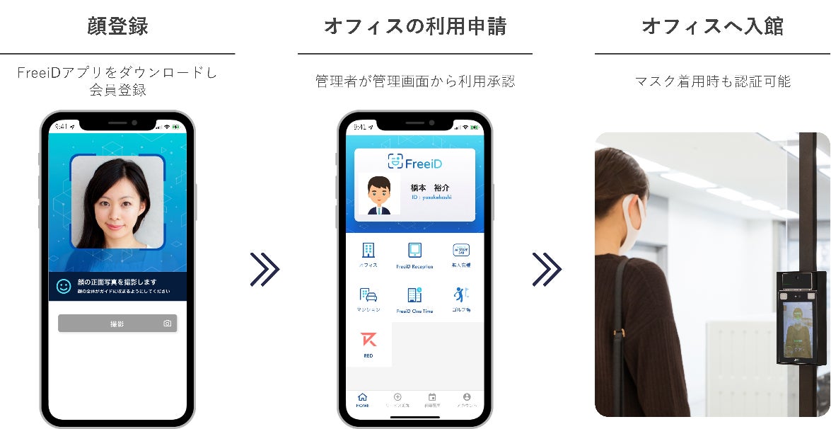 「FreeiD」は鍵や財布・スマホを持たずに、手ぶらでリアルな世界でのあらゆる行動(「入退」「本人確認」「決済」)を繋ぐ顔認証プラットフォームになります。
