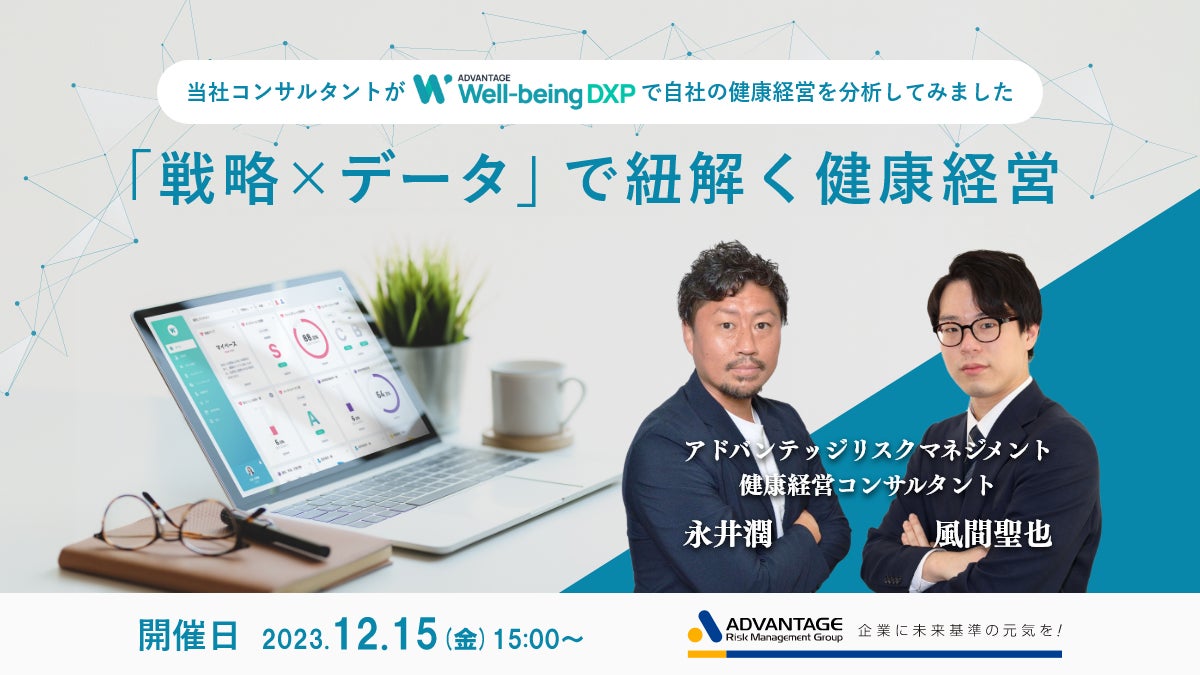 今回は、企業の健康経営推進を支援し、自社も健康経営銘柄に選定されている当社アドバンテッジリスクマネジメントの健康経営を舞台として、戦略を踏まえたデータ分析とその活用の事例をご紹介します。