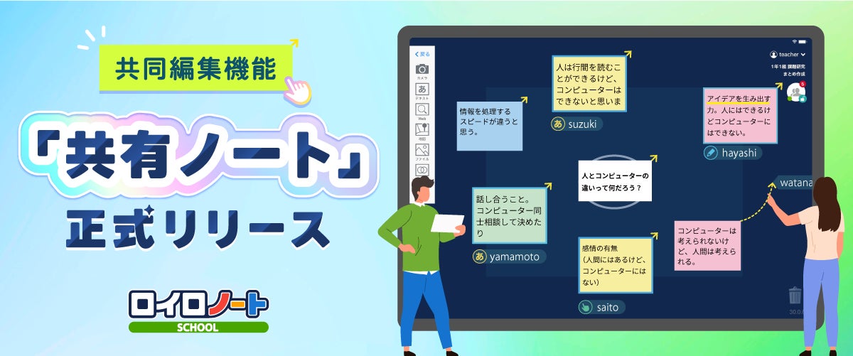株式会社LoiLoは、授業支援クラウド「ロイロノート・スクール」の共同編集機能「共有ノート」を正式リリースしました。共有ノートを使うと、複数人が同時にノートを編集できます。NEXT GIGAで重視されている「協働学習」を効果的に行えます。