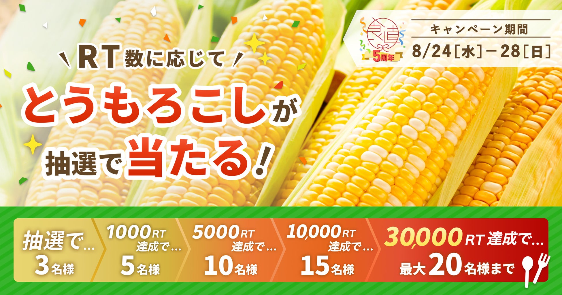 食べチョク5周年を記念した大感謝祭を開催!期間限定イチオシBOXの販売や、高級和牛や今が旬の新鮮とうもろこしなどが当たるキャンペーンを実施。