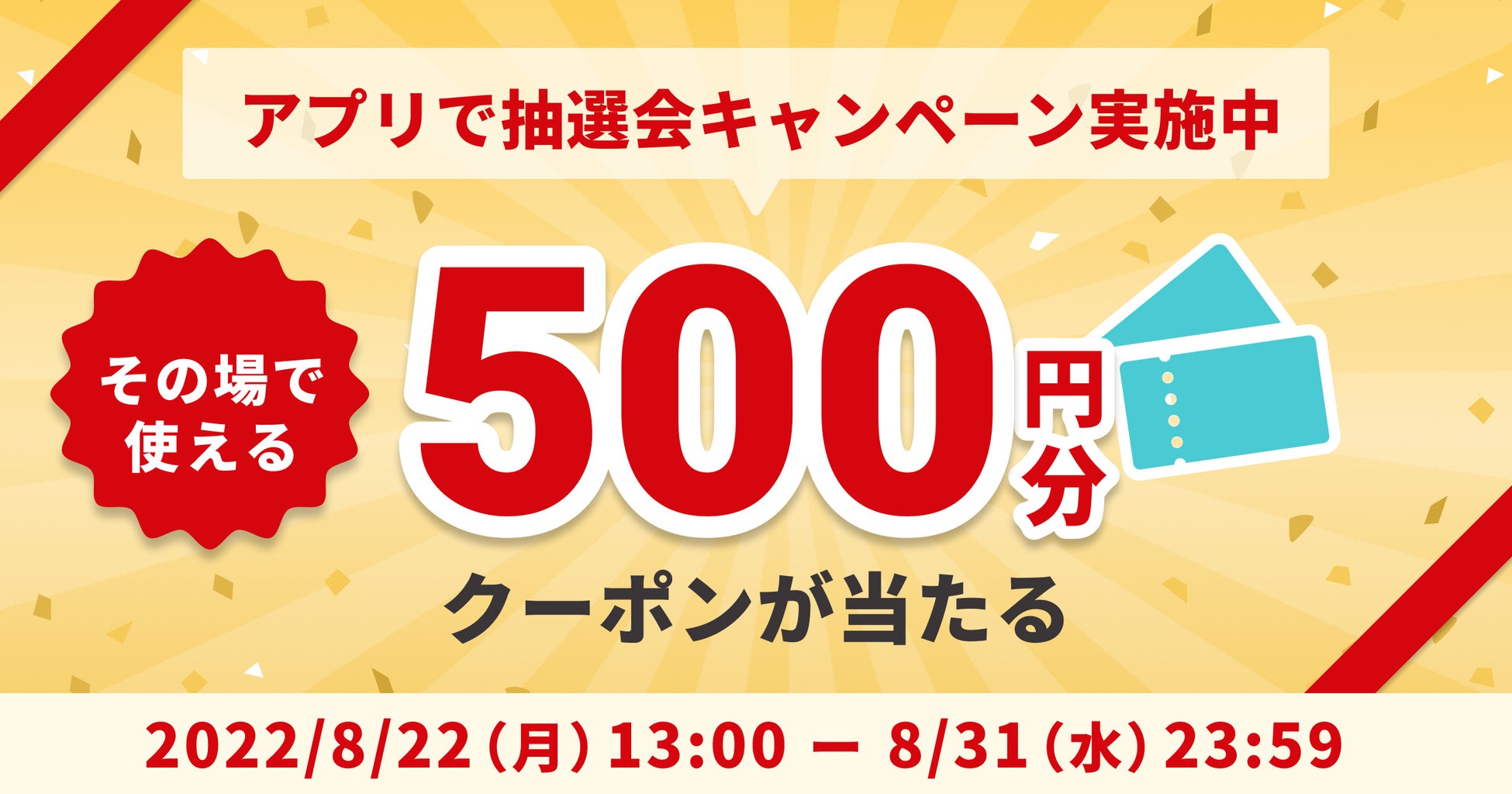 さらに、2022年8月22日(月)~8月31日(水)はアプリ限定で「その場で使えるクーポンが当たる抽選会」を毎日開催します。