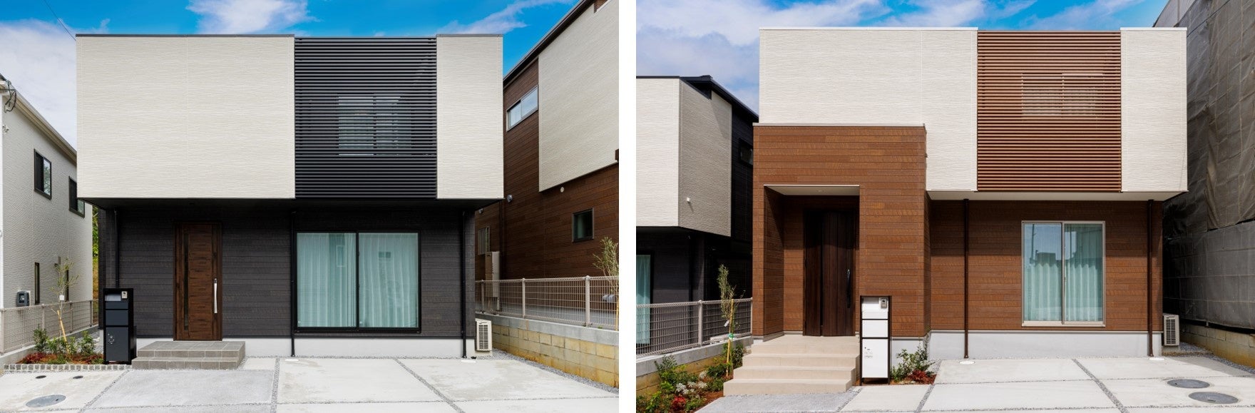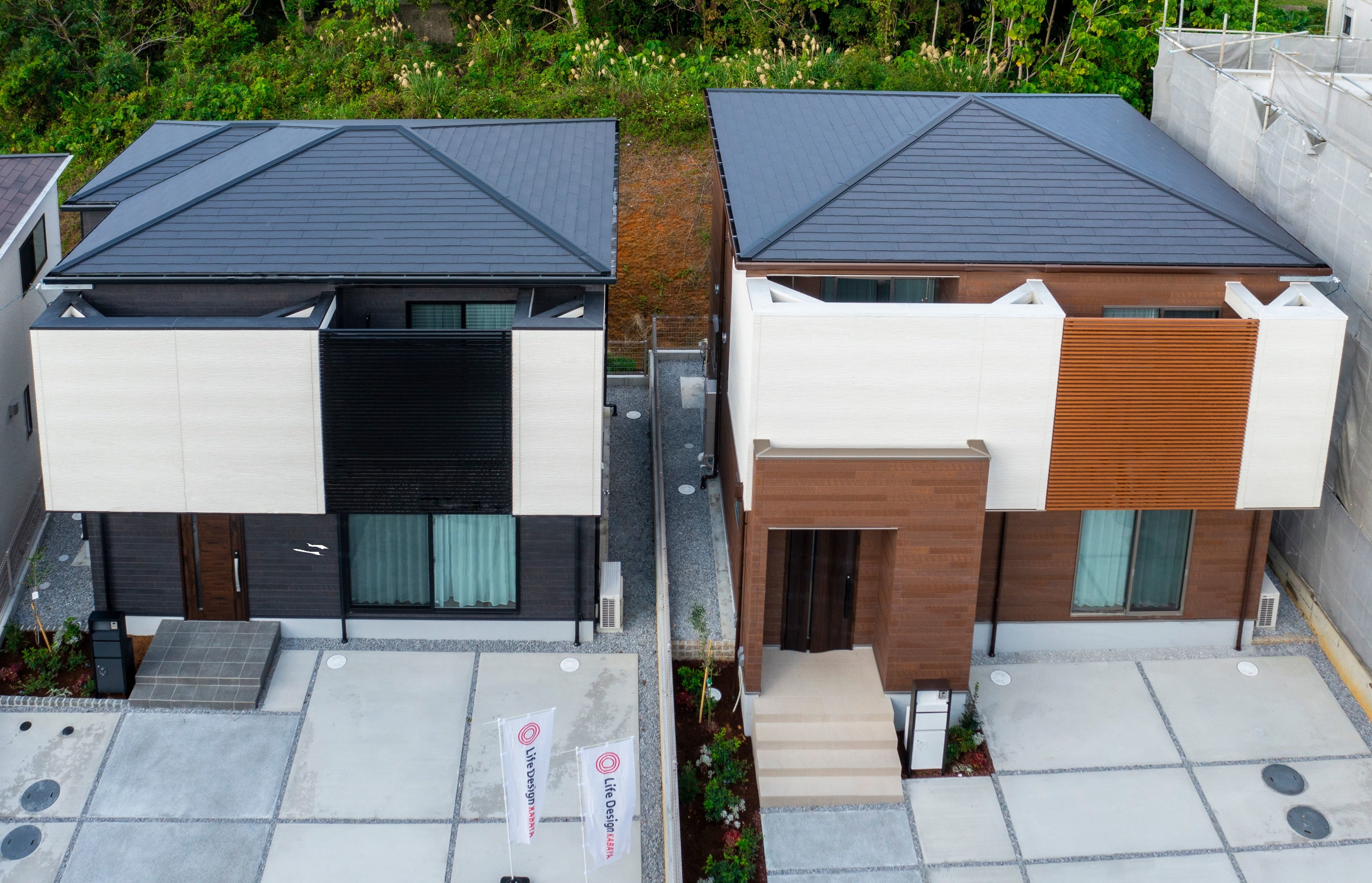 〈CLTハイブリッド構法を採用した初の分譲住宅が2棟同時に完成。上:沖縄市越来②号地分譲・下:沖縄市越来③号地分譲〉