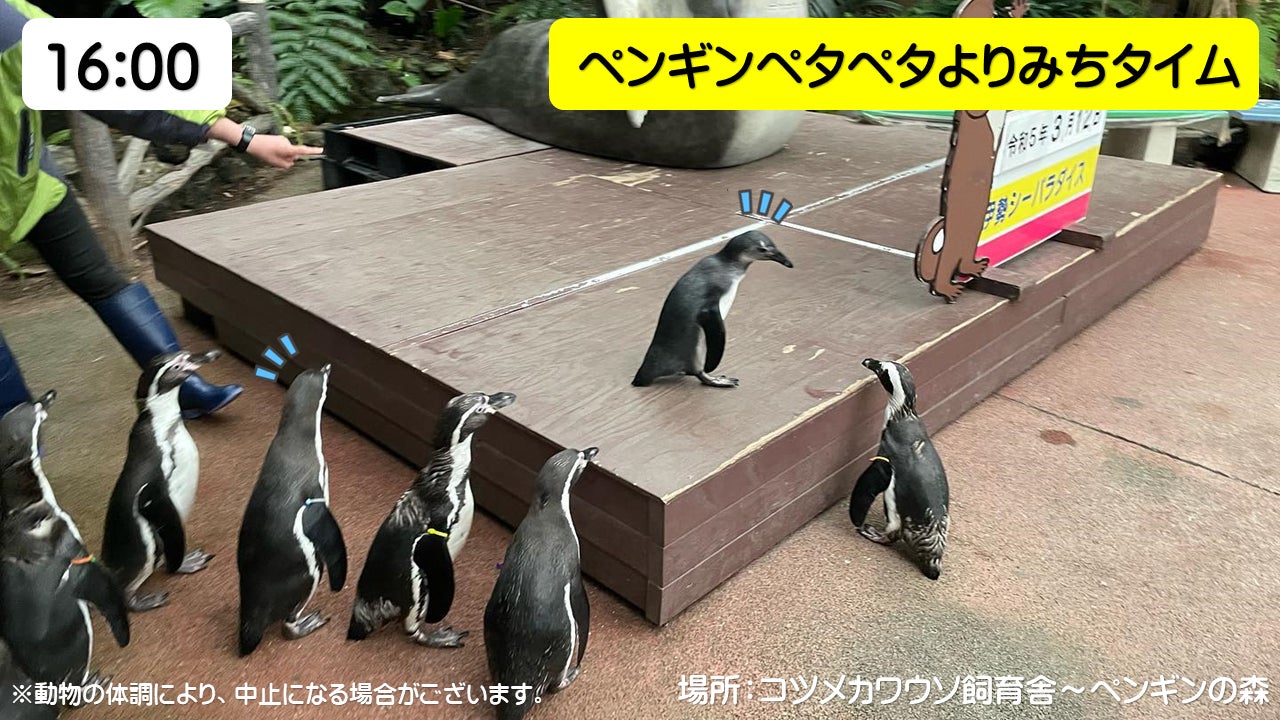 お散歩先からペンギンの森に帰るペンギンたちを間近で見ることができ、ペンギンの特徴についてのお話をスタッフが行います。