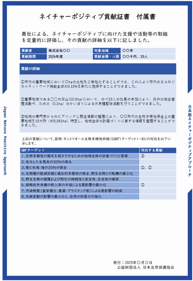 公益財団法人日本自然保護協会(理事長:土屋俊幸、以下NACS-J)は、地域(市町村)全体を見据えたランドスケープアプローチ※1でネイチャーポジティブの実現に取り組んでいる企業の貢献度を評価して「ネイチャーポジティブ貢献証書(以下、貢献証書)」を発行しています。