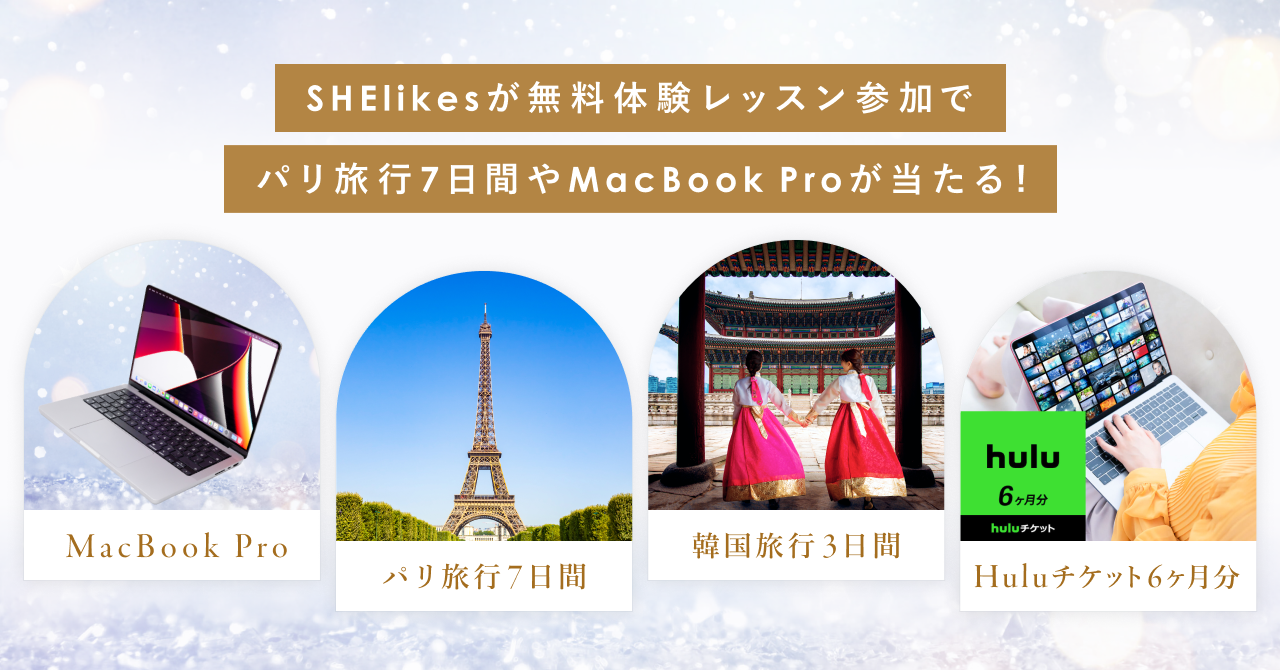 ⬛️ SHElikesの無料体験レッスン参加であなたの「変わる」をサポートする豪華特典を抽選でプレゼント