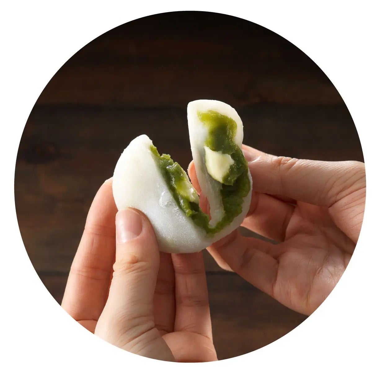抹茶餡とチーズがとろけ合う もちもちチーズ大福