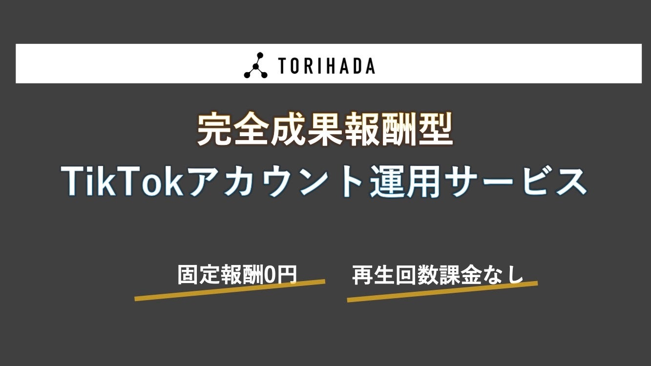 クリエイターDXカンパニーである株式会社TORIHADA(本社:東京都渋谷区、代表取締役社長:若井 映亮)は2024年3月より成果報酬型のTikTokアカウント運用サービスを開始いたします。