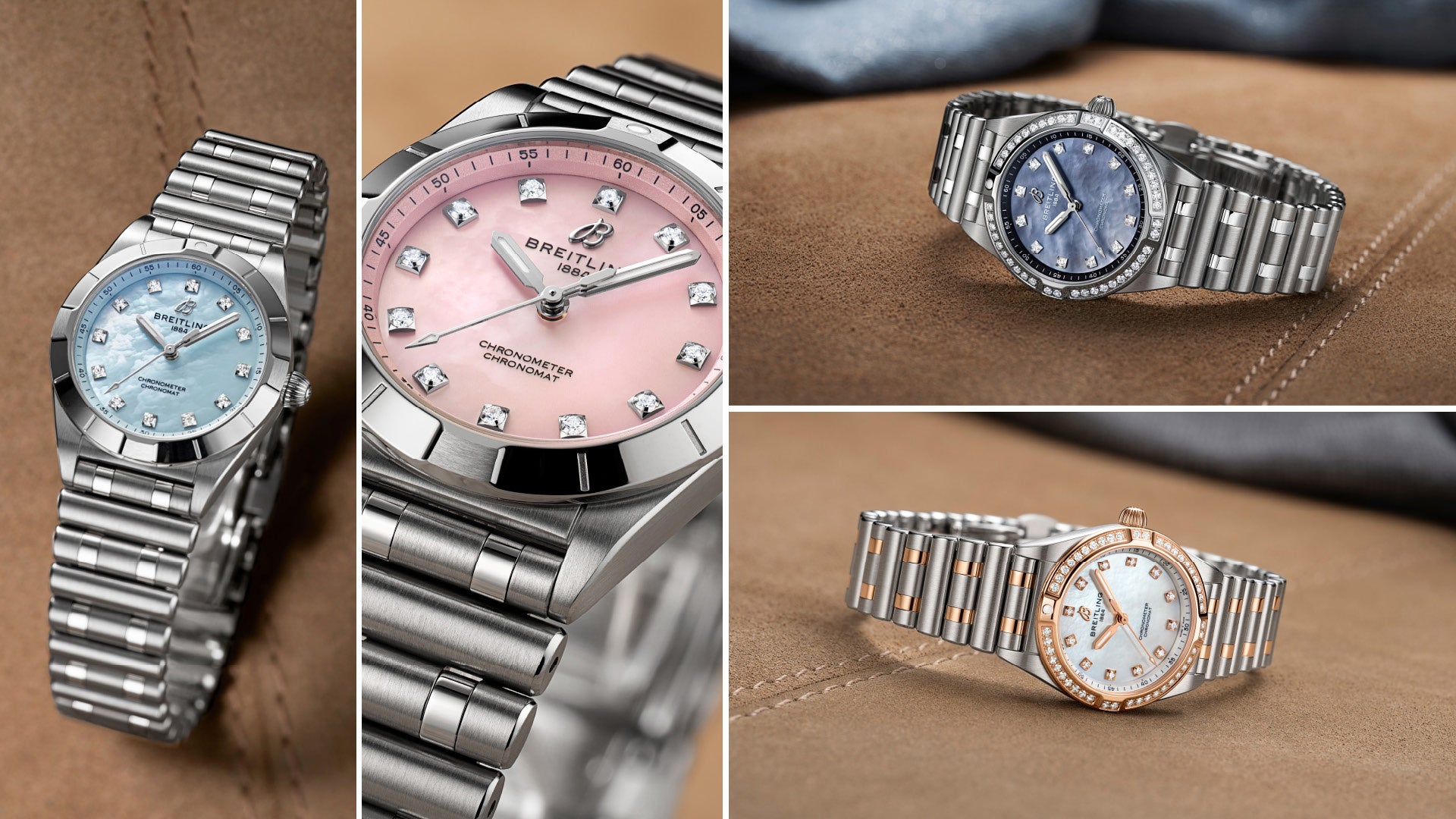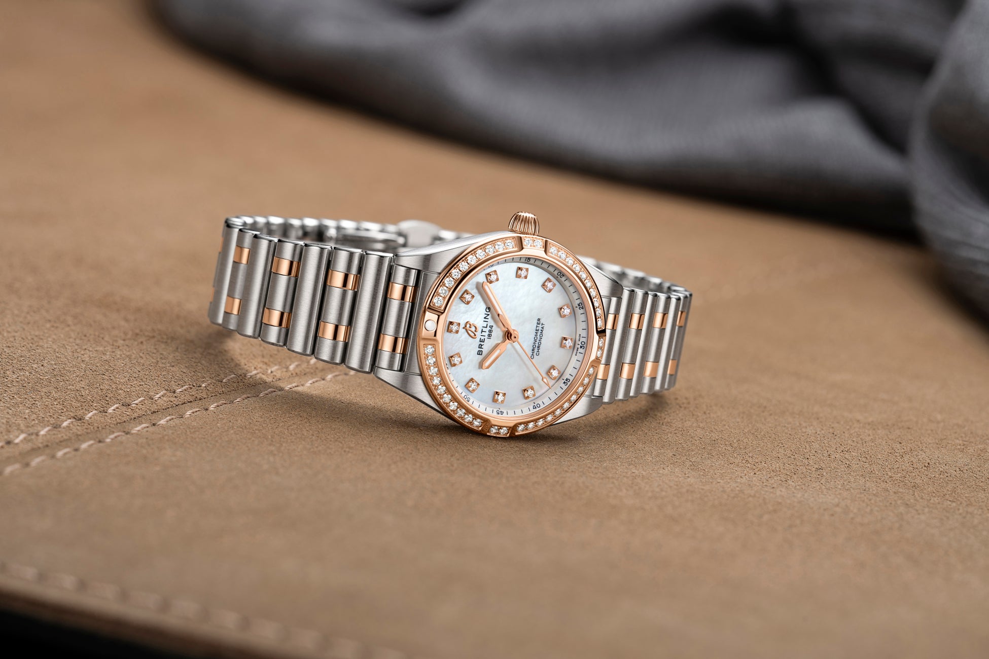 ダイヤルは、ブルーまたはピンクのマザーオブパールにラボグロウンダイヤモンドのインデックスをあしらったモデル、ステンレススチールにブラックのマザーオブパールのダイヤルにラボグロウンダイヤモンドをあしらったベゼルとインデックスを配したモデル、ステンレススチールと18Kレッドゴールドのツートンカラーのモデルからお選びいただけます。スイスクロノメーター協会(COSC)の認定を受けたこのスーパークォーツ™キャリバー72搭載クロノメーターには、いずれも快適なバタフライ ディプロインバックルを採用。