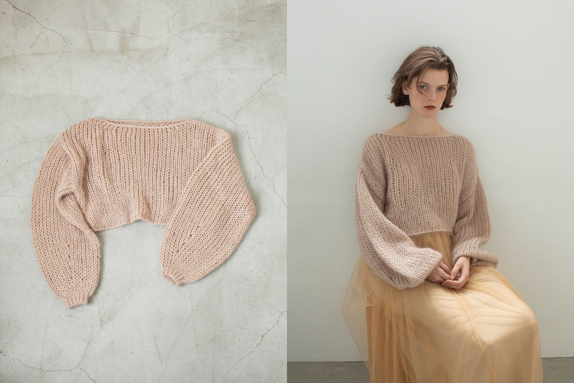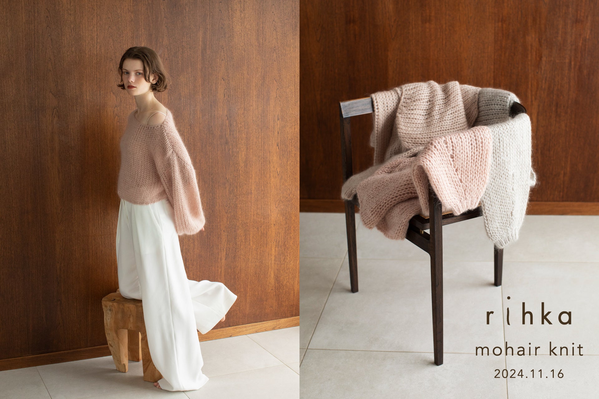 昨年好評だったmohair knitが、シルエットとカラーをアップデートした新デザインで登場します。なめらかで柔らかい肌あたりのキッドモヘヤをざっくり編んだ、ウォーム感ととろけるような風合いが特徴のニット。袖のボリューム感はそのままに、様々な着こなしを楽しめるようコンパクトな丈感にしつつ、デコルテをより美しく見せるネックデザインに仕上げています。肌をきれいに魅せてくれるrihkaオリジナルのニュアンスカラーです。なお、本商品は11月13日(水)から開催する伊勢丹新宿店のポップアップストアにて、数量限定で先行発売します。