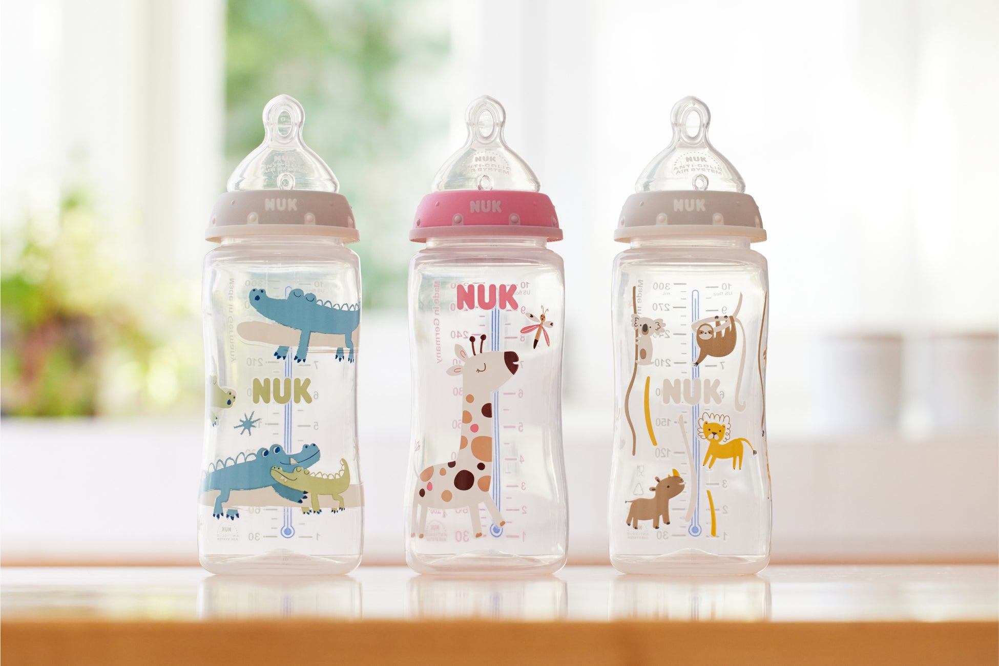ヌークのほ乳びんは、ドイツで子どもの歯並びの悪化や発語障害が深刻な社会問題となった1950年代に医師や助産師が共同で開発しました。その特長は、おっぱいと同じ口のカタチと運動で飲むことができるニップル。おっぱいを飲む運動であごや舌の筋力が発達し、きれいな歯並びや生涯の健康づくりにつながります。母乳で育つお子さまも戸惑わずに受け入れやすいほ乳びんです。近年はディズニーシリーズを中心にデザインにも力を入れ、ほ乳びんを選ぶ楽しさ、使う楽しさを提供しています。