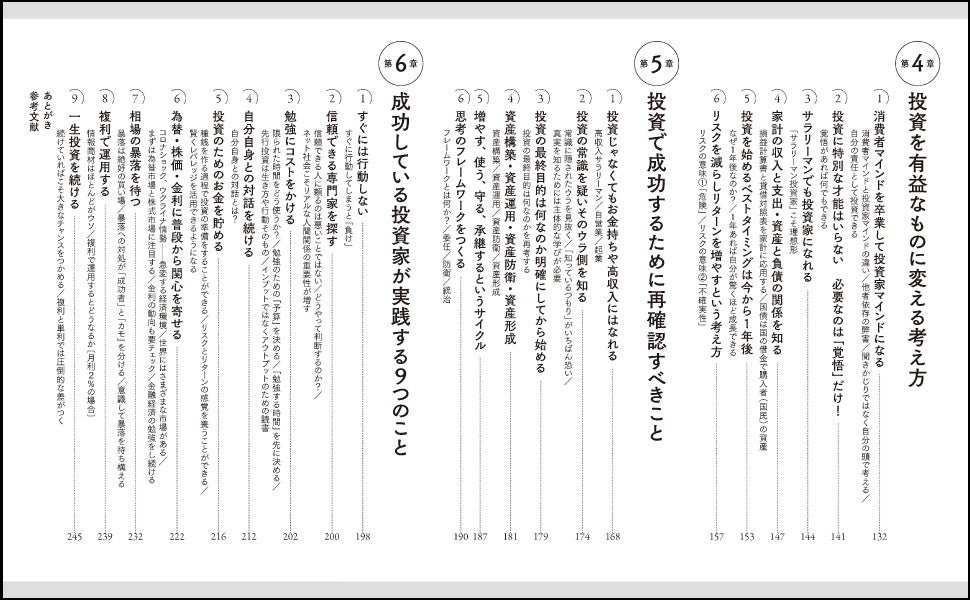 本書では、自分の目的をかなえる術が本当に投資しかないのか、そこから点検します。資産や収入を増やすには別の方法もあります。本気で成功したいなら、「一生モノの投資の本質」を勉強してからでも遅くはなく、むしろ成功への早道といえます。