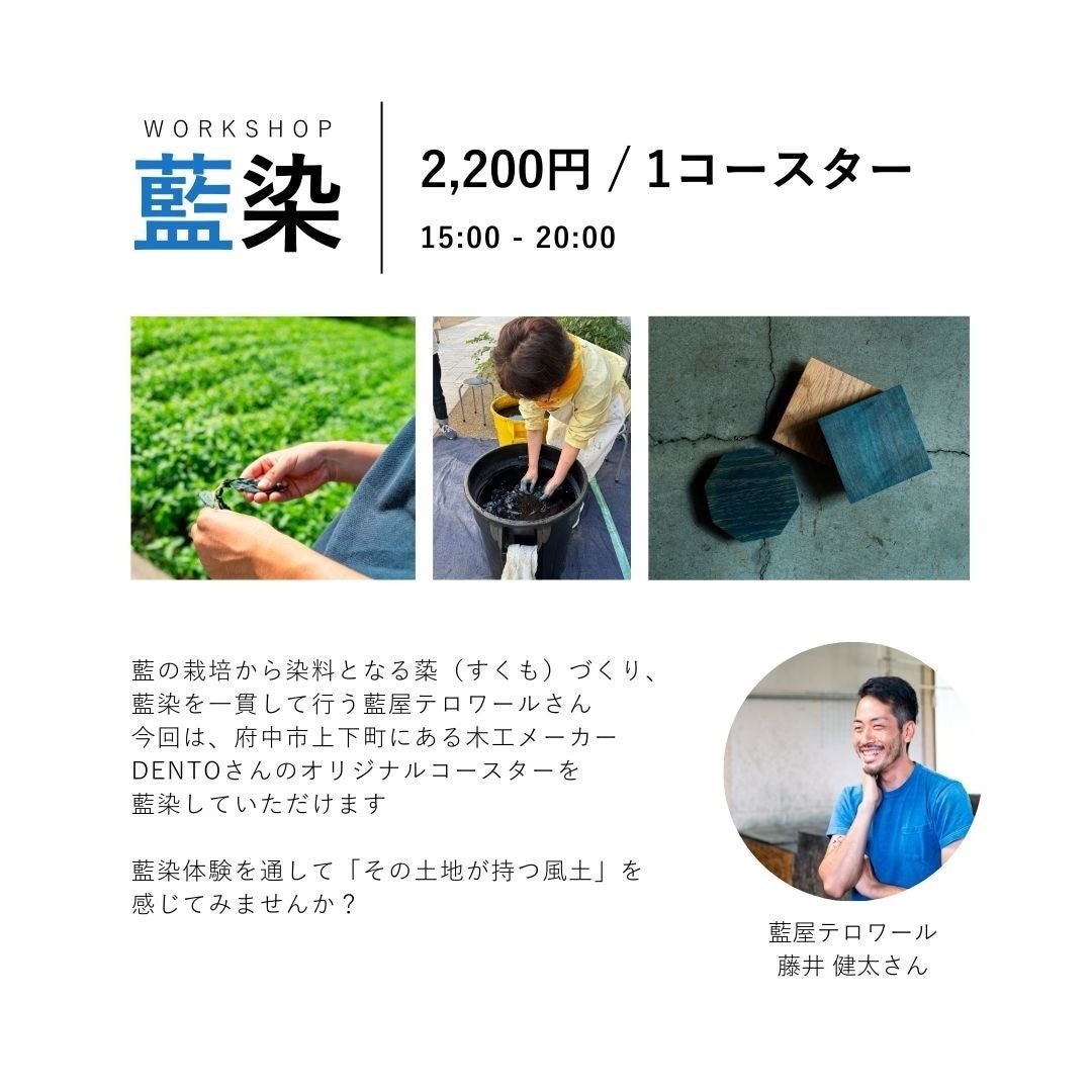 藍の栽培から染料となる蒅(すくも)作り、藍染までを一貫して行う藍屋テロワールさん。本イベントでは、府中市上下町にある木工メーカーDENTOさんのオリジナルコースターを藍染していただけます。藍染を通して「その土地が持つ風土」を感じてみませんか?