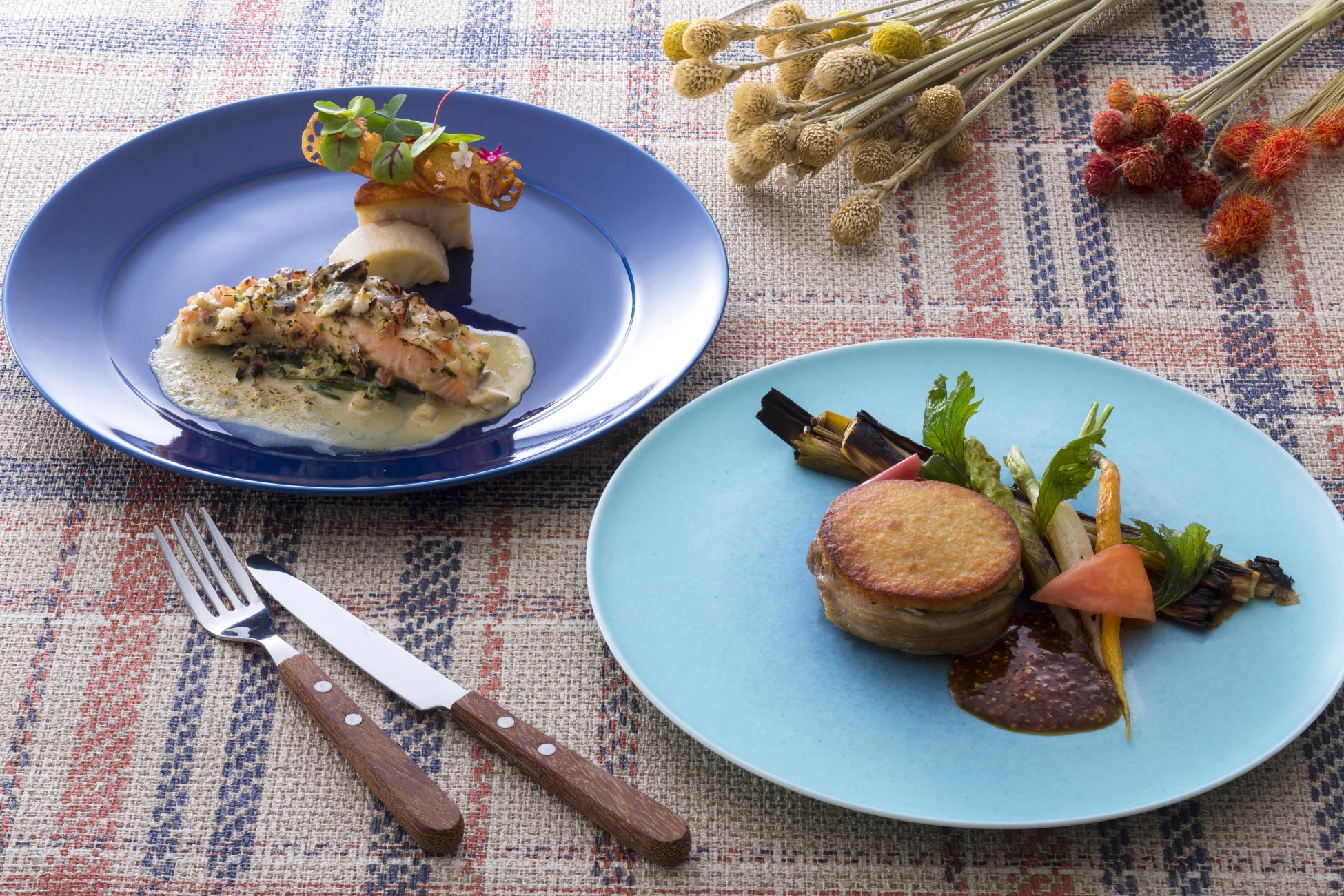 料理長おすすめ食材がメイン料理で登場。11月は「神鍋清流サーモンと姫路レンコンのグラティネ」で、清流サーモンの上品な旨みとレンコンの食感が際立つ一品。12月は辛子オイルでマリネして焼いた“播州百日どり”と、じっくり煮て甘みを引き出した“岩津葱”の相性が愉しめるヴィエノワーズをお届けします。