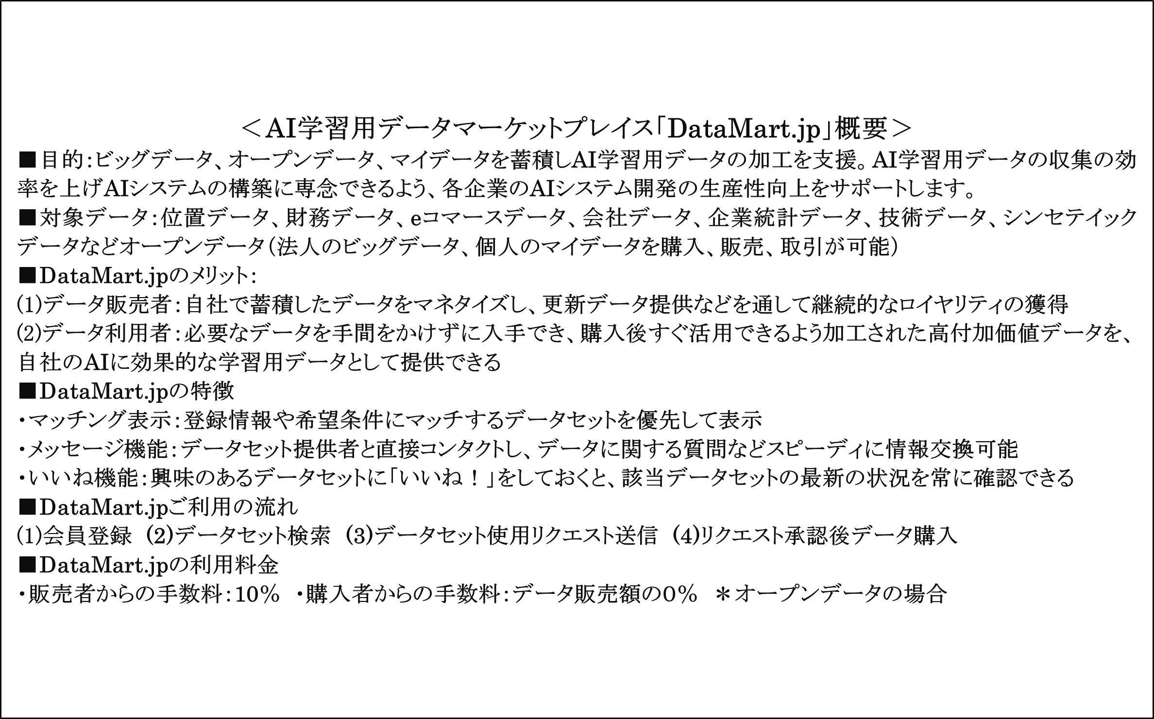 <AI学習用データマーケットプレイス「DataMart.jp」概要>
