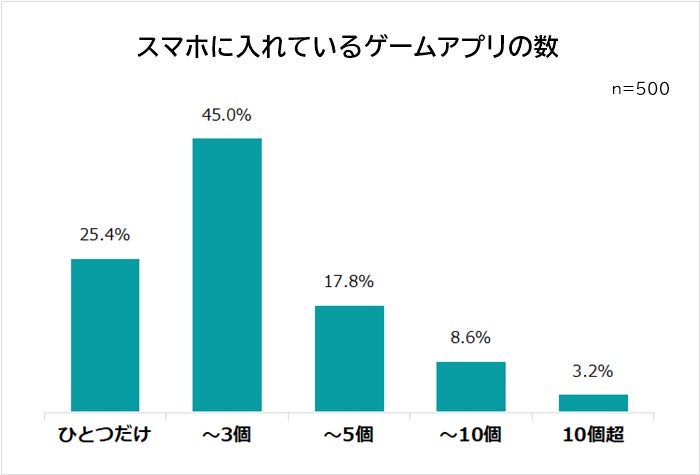 ただ、なかには10個前後のゲームアプリをインストールしている人もいて、かなり個人差が大きくなっています。「インストールしたものの、今は遊んでいないアプリがある」という人も多いのかもしれません。
