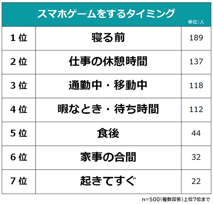 【スマホゲームはいつしてる?】社会人500人アンケート調査