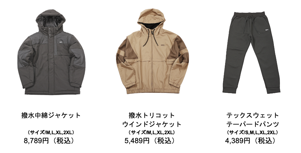 メンズ・レディース・ジュニア展開で価格はトップス:メンズ・レディース/3,289円~9,889円、ジュニア/2,189円〜6,589円、ボトムス:メンズ・レディース/4,389円、ジュニア/2,189円(価格は全て税込)と、お求めやすい価格も魅力です。
