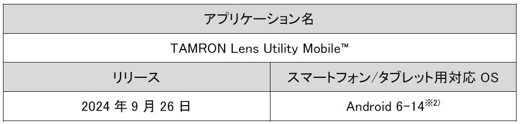 ※ TAMRON Lens Utility Mobileをご使用いただくには、対応レンズのファームウェアをアップデートする必要があります。レンズのファームウェアアップデートにはパソコン版のTAMRON Lens Utilityをご使用ください。