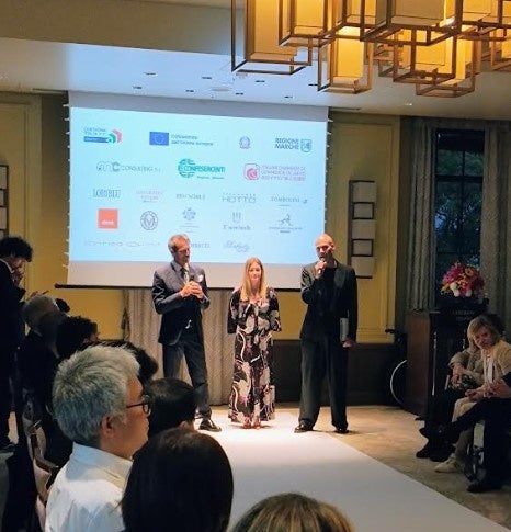 2025年6月4日・ランドマーク大阪 マルケ州の新進気鋭ファッションデザイナーたちをご紹介。メディア関係者、マルケ州ファッション関係者、約80名が集結。