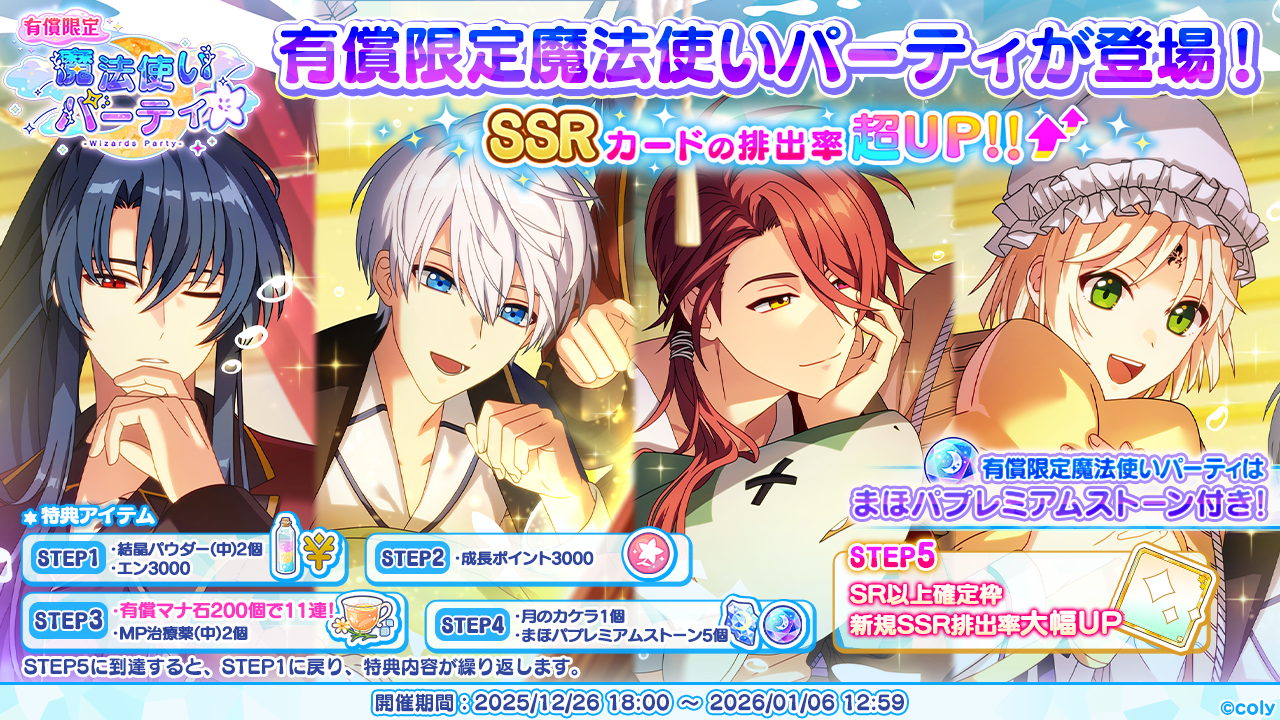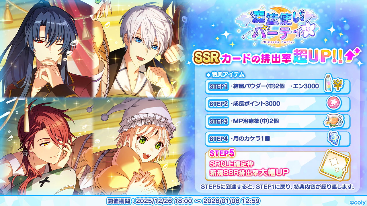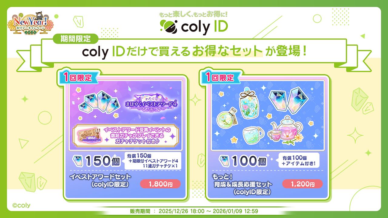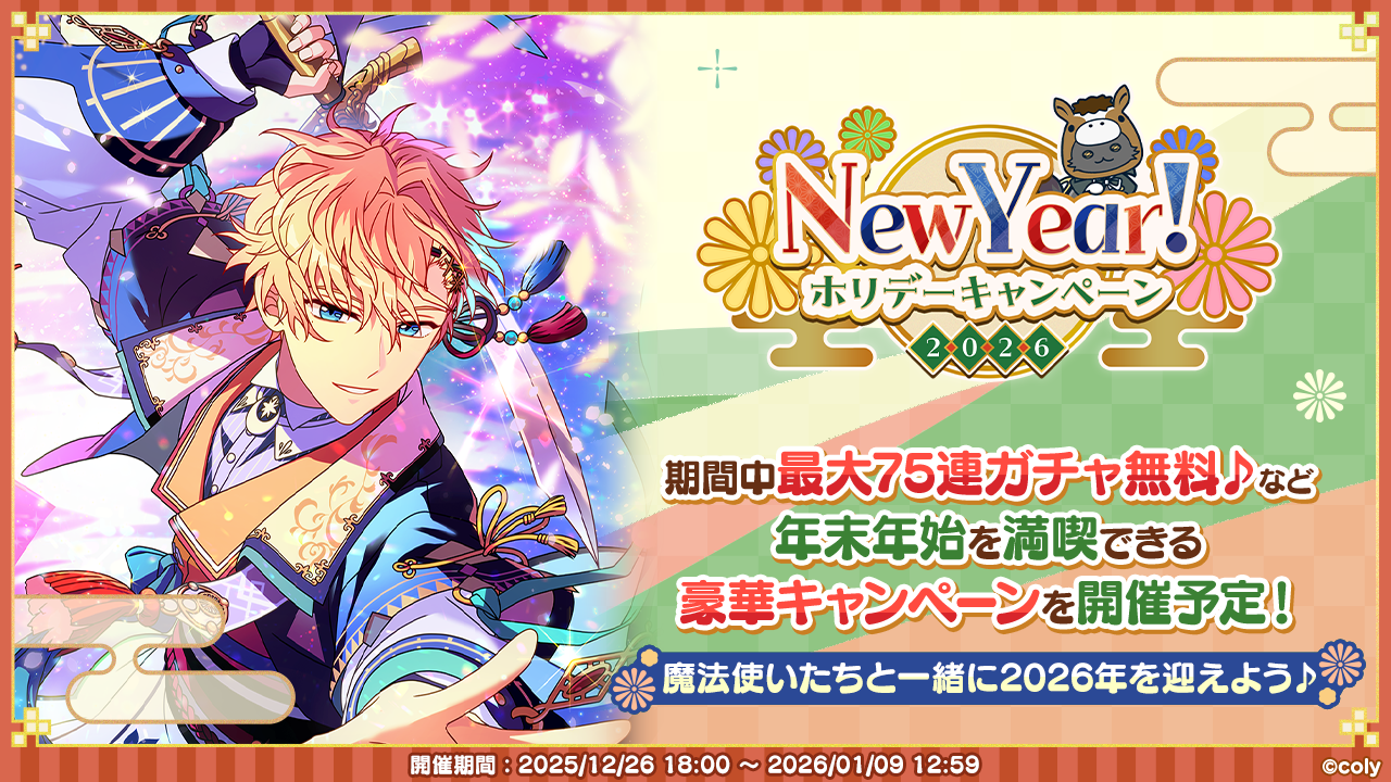 この度、株式会社coly(所在地:東京都港区、代表取締役社長:中島杏奈)は『魔法使いの約束』において、「New Year!ホリデーキャンペーン 2026」を開催中です。