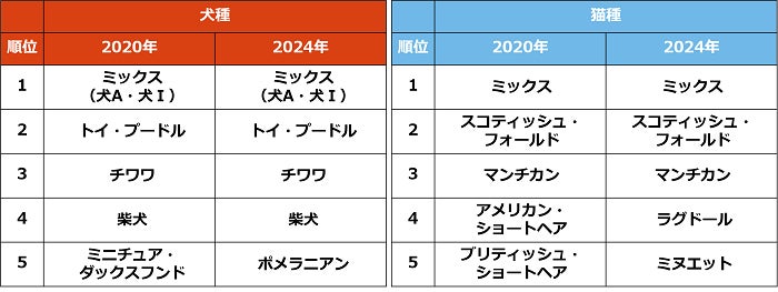 アイペット損害保険株式会社(本社:東京都江東区、代表取締役 執行役員社長:安田敦子 以下、当社)は毎年、前年1年間に当社のペット保険にご加入いただき、保険契約が開始されたペットを対象に、人気飼育犬種・猫種ランキングの調査を行っています。本年は、犬種・猫種に加え小動物全体の飼育ランキングも初公開します。