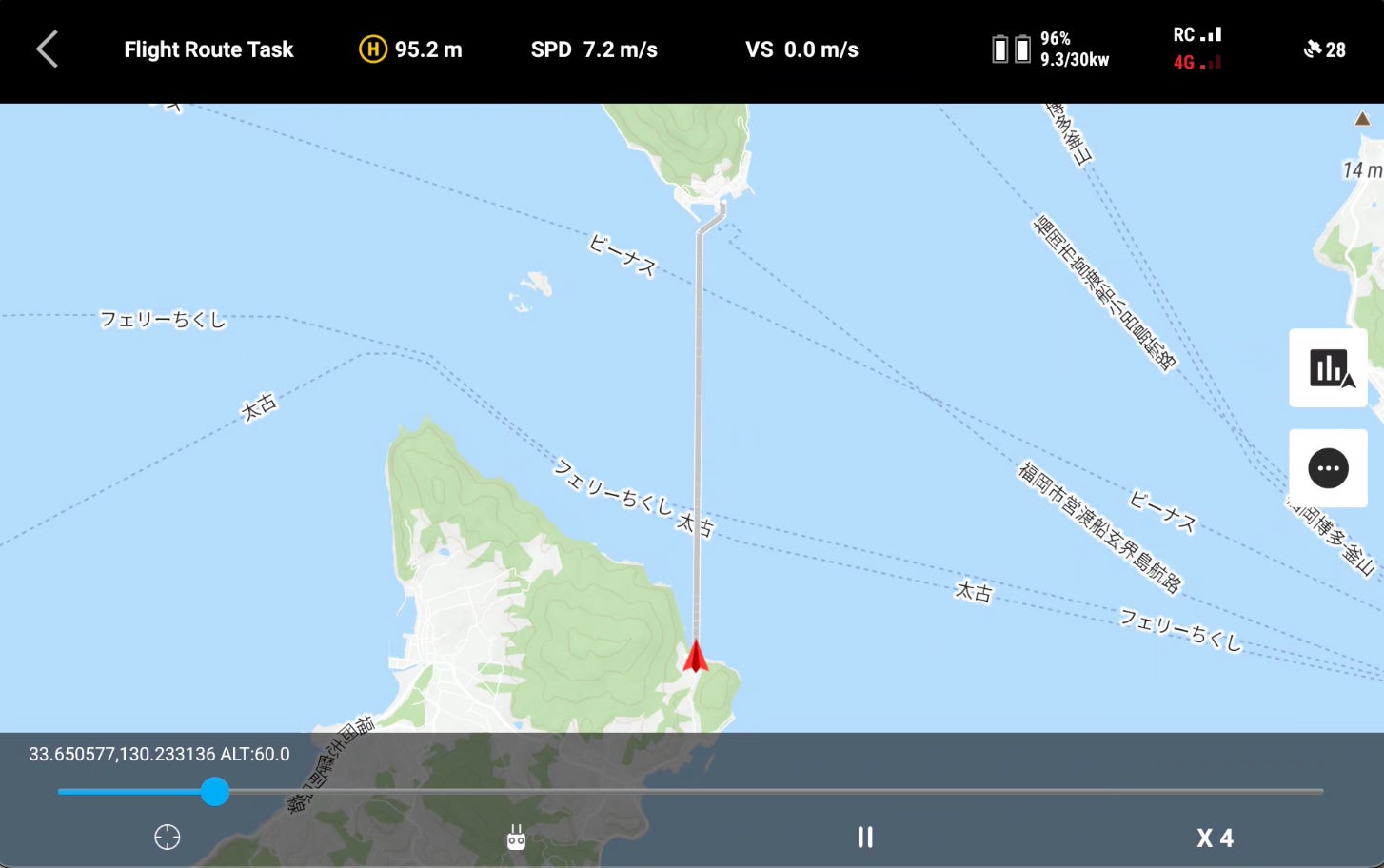 今回の玄界島で実施された「レベル3.5」飛行による離島への長距離ドローン搬送は、国内でも珍しい事例といえます。日本の無人航空機(ドローン)運用ルールでは、通常、人口密集地を含む目視外飛行がレベル4に分類されますが、レベル3.5はそれに準じた安全対策や運航管理体制を確保したうえで、制限された範囲内でレベル4に近い運用を実現している点が特徴です。今回は安全性を担保するため、docomo skyのLTE上空利用プランを活用し、遠隔地への映像伝送にて常時監視を実施しました。