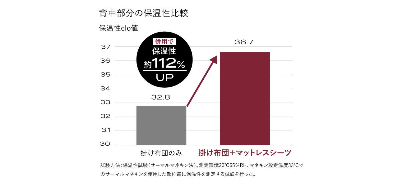 掛け布団とマットレス プロテクターを併せて使うことで、保温性が約112%向上しさらに効果的です。