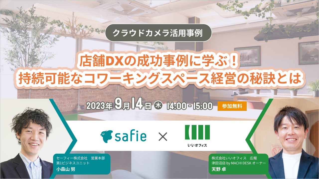 【セーフィー共催オンラインセミナー】「店舗DXの成功事例に学ぶ!持続可能なコワーキングスペース経営の秘訣とは」2023年9月14日(木)14:00開催