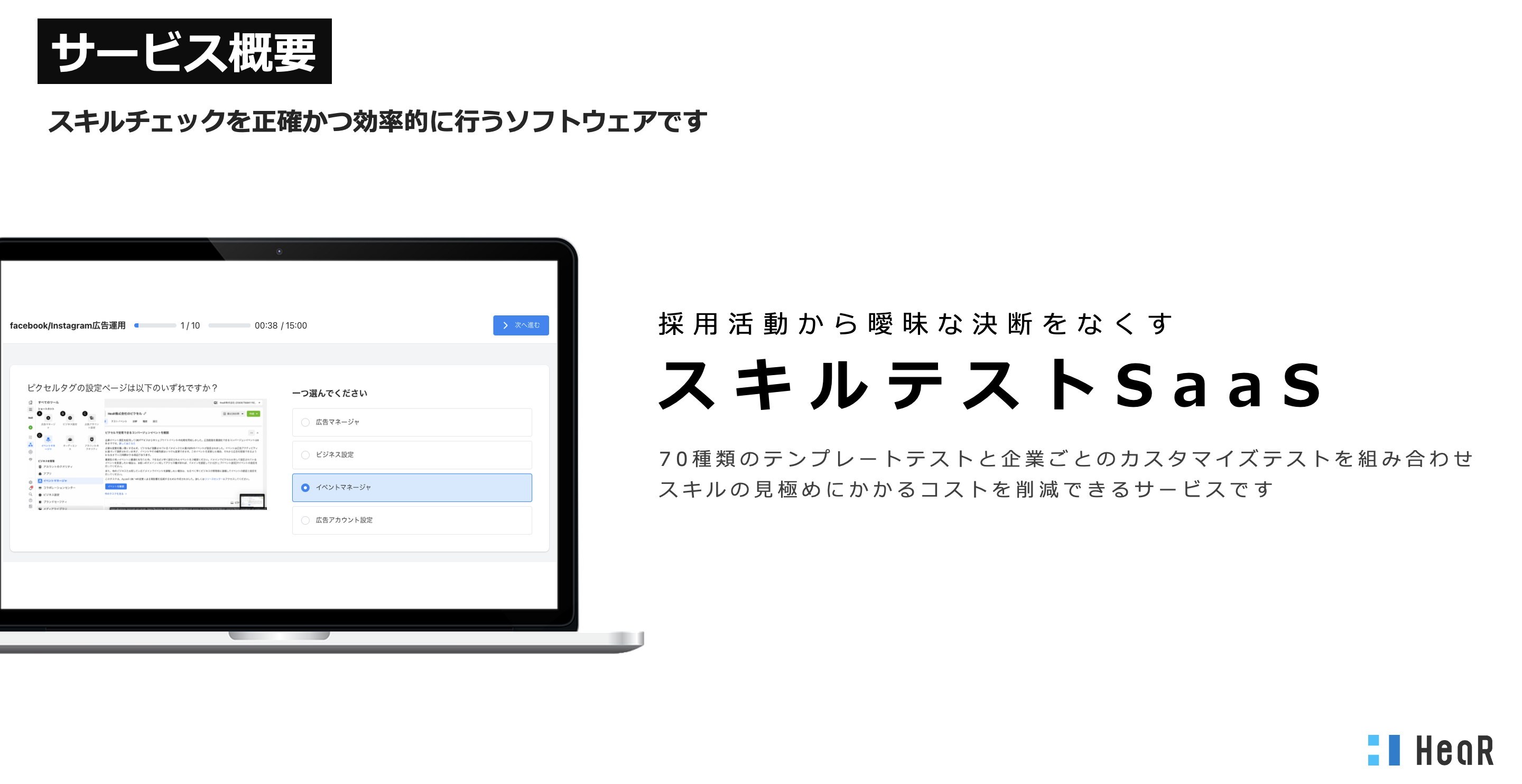 HeaR株式会社(本社:東京都品川区、代表取締役CEO:大上諒、以下「HeaR」)は、採用面接の判定を自動化するスキルテストSaaS「ジョブテスト」(https://jobtest-lp.com/)を2月15日(火)に正式リリースしました。