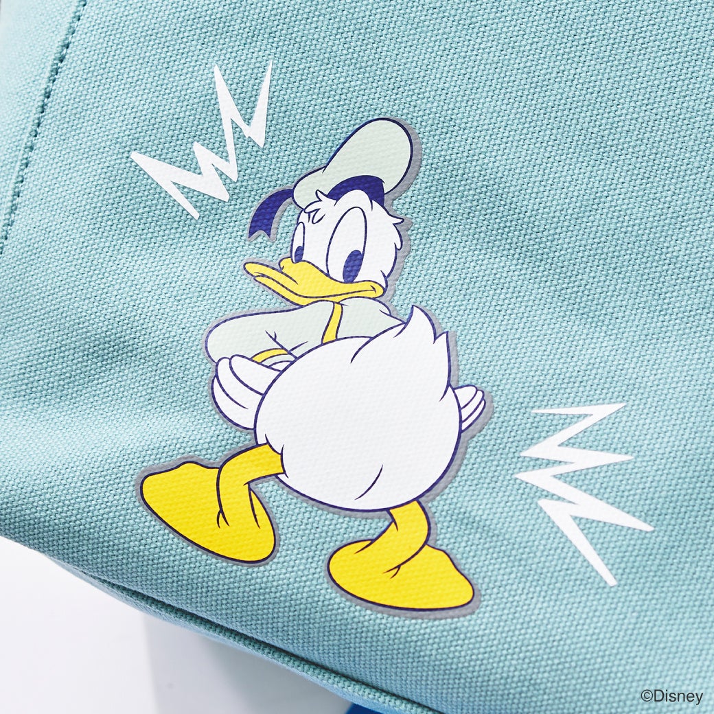 爽やかなアイスブルーのキャンバス生地に、「ドナルド」をイメージしたイエローのロゴがキュートなデザイン。