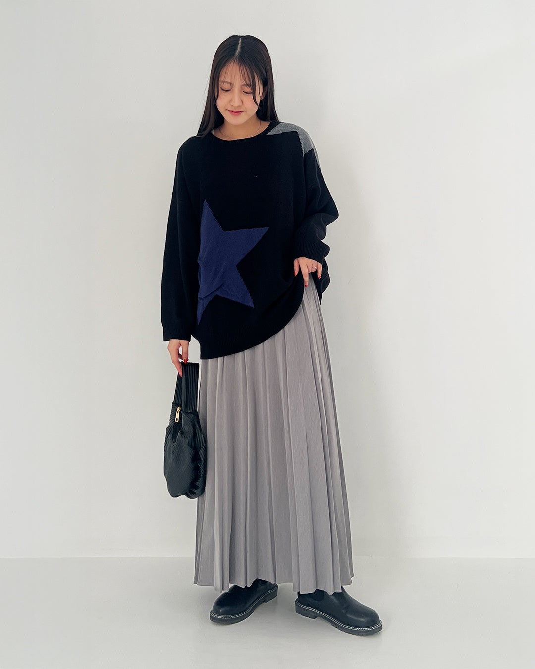 定番のジャガードニットも、大胆な星柄を選べば一気にこなれた表情に。 ラフになりすぎず、どこか品の良さを感じさせる「大人の余裕」をまとったスタイルです。 日常の景色が少しだけ特別に見えるような、心地よいカジュアルをご提案します。