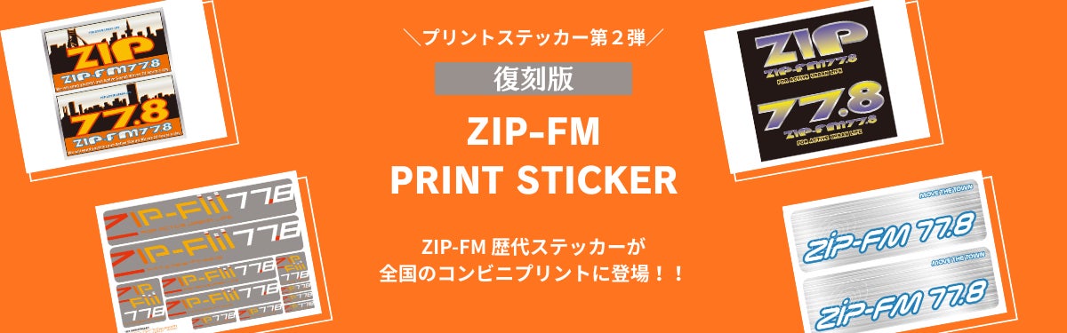 ZIP-FMでは、開局以来の歴代ステッカーがプリントされた「復刻版 ZIP-FM PRINT STICKER」を全国のファミリーマート・ローソンで発売開始いたします。