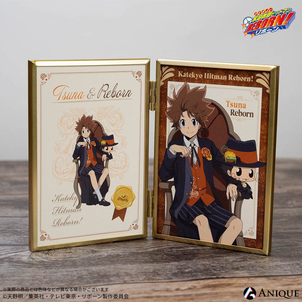 描き下ろしイラストを中心に、ボンゴレファミリーの紋章や額ぶちに名場面を収めたダイカットパーツが存在感を放つ、大きなジオラマアクリルスタンドです。