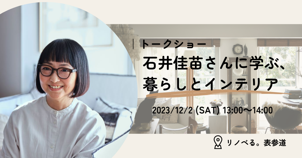 【12/2(土)】トークショー「石井佳苗さんに学ぶ、暮らしとインテリア」