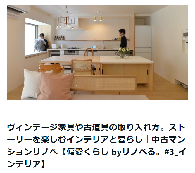 11月24日(金)からはYoutubeやnote等で偏愛とくらしとインテリアをテーマにした発信をスタートし、中古マンションをリノベーションしたインテリア好きのIさん夫婦が暮らす住まいを深堀ります。YouTubeではインタビュー形式のルームツアー動画を公開。イベントでも放映します。リノベる公式noteで連載中の「偏愛くらし byリノベる」マガジンでは、Iさん一家のインテリアから始まる住まいづくりのストーリーをご紹介します。