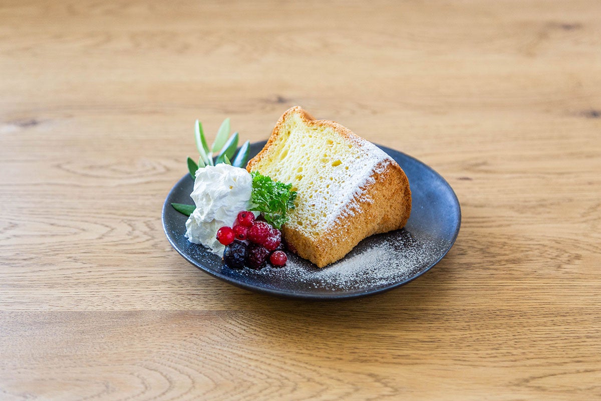地元食材を使用したフードや、こだわりのコーヒー、スイーツをお楽しみいただけるカフェエリアを併設。植物に囲まれた空間でこだわりの⾷材を使⽤したオリジナルメニューとドリンクを提供します。テラス席も完備。