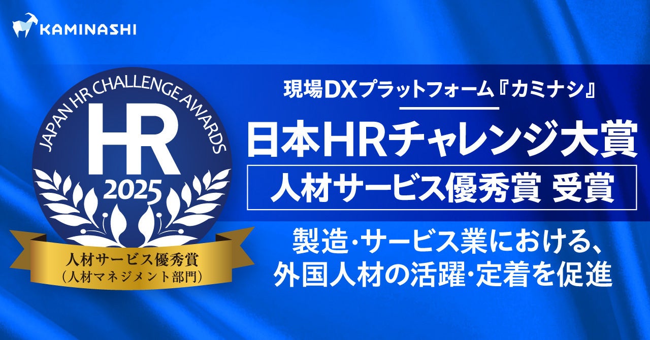 現場DXプラットフォーム『カミナシ』シリーズを提供する株式会社カミナシ(本社:東京都千代田区、代表取締役CEO:諸岡 裕人、以下「カミナシ」)は、厚生労働省後援の「第14回 日本HRチャレンジ大賞」において、「人材サービス優秀賞(人材マネジメント部門)」を受賞しました。