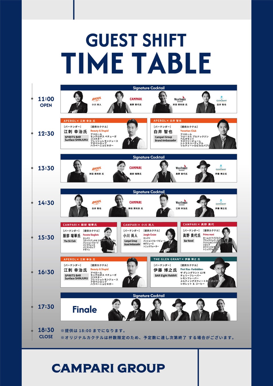 今回のブースでは、カンパリジャパン主催の歴代カクテルコンペティションのチャンピオンやファイナリストに加え、当日は弊社ブランドアンバサダーもバーテンダーとして登場。プレミアムブランド「カンパリ」「アペロール」「ワイルドターキー」「グレングラント」を使用し、この日のためだけに考案した数量限定のオリジナルカクテルを提供します。