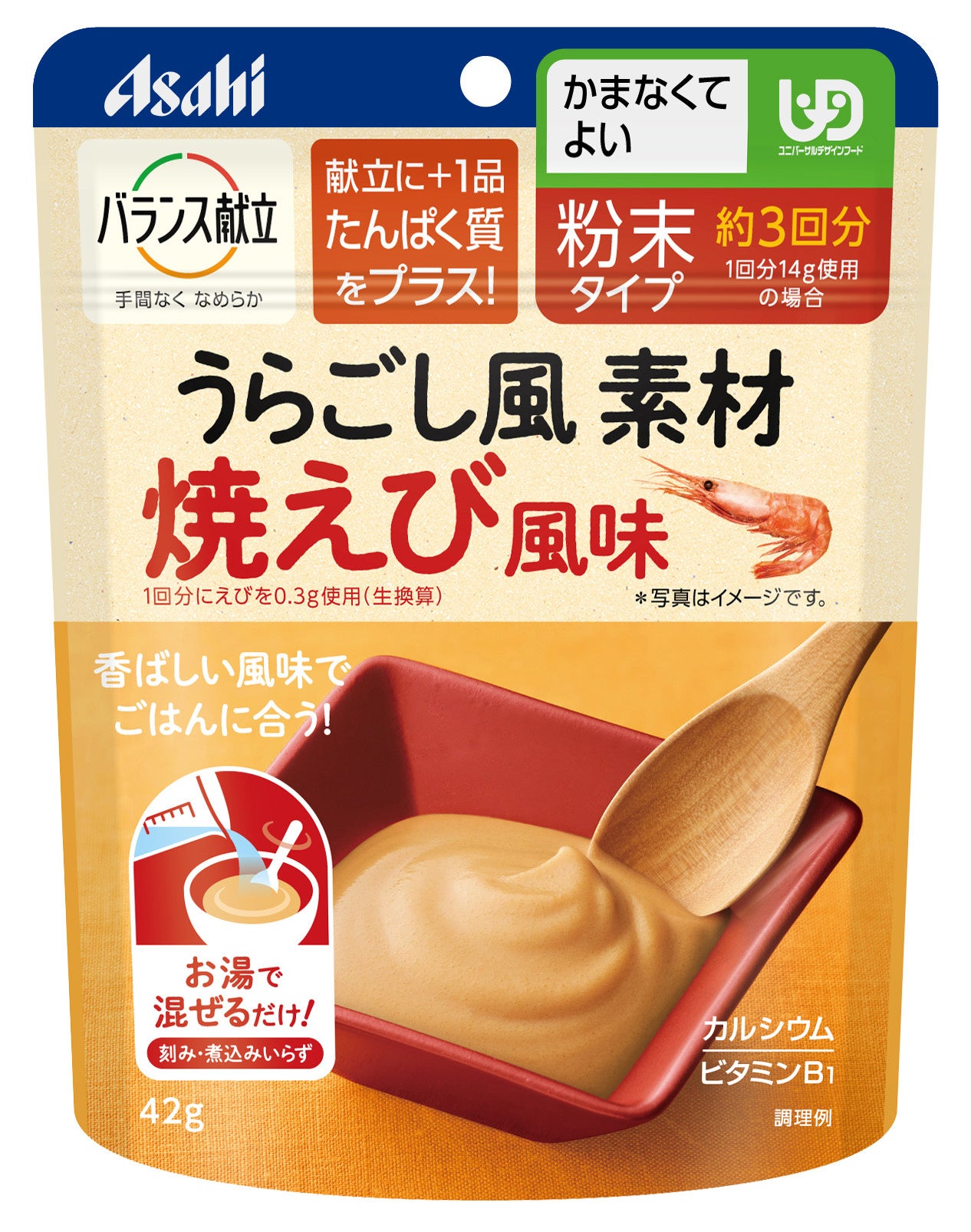アサヒグループ食品株式会社(本社 東京、社長 川原浩)は、「バランス献立」ブランドから、粉末タイプのやわらか食「うらごし風素材」を3月13日から全国で発売します。「焼鮭風味」「焼えび風味」「煮豆風味」の3アイテムで展開します。