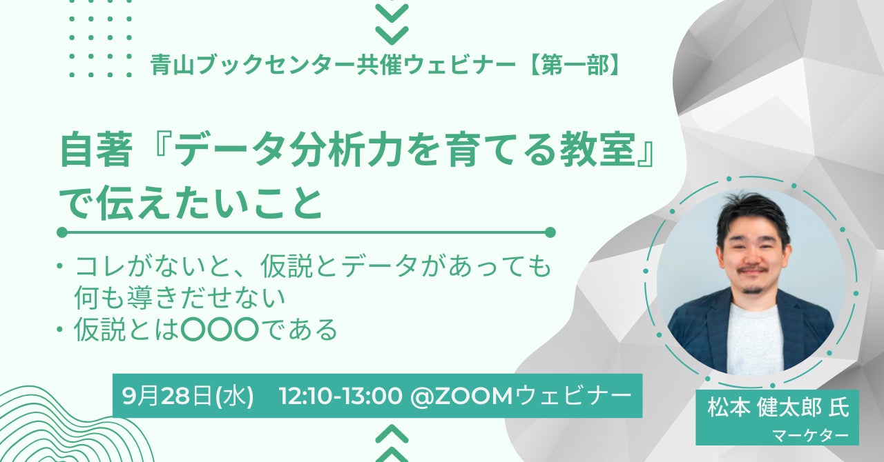 【マーケティング関係者向け無料ウェビナー】著者自身が語る『データ分析力を育てる教室』で伝えたいこと~コレがないと、仮説とデータがあっても何も導きだせない!?~<9月28日(水)12:10~>